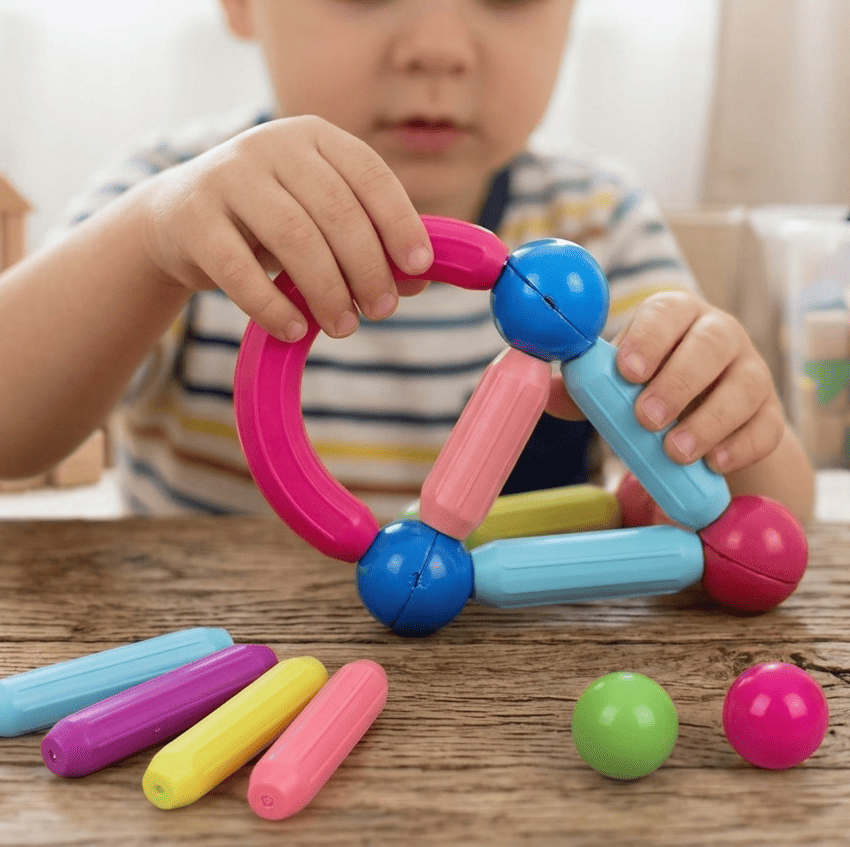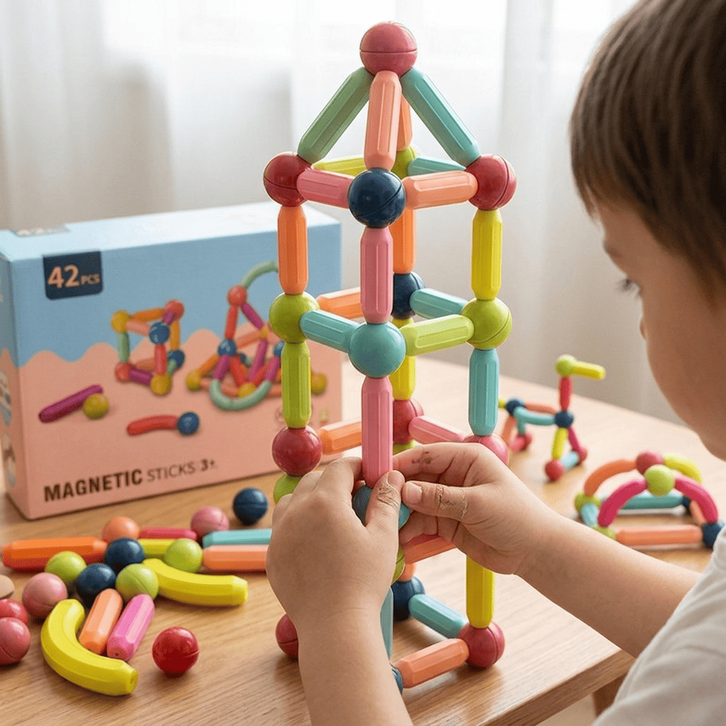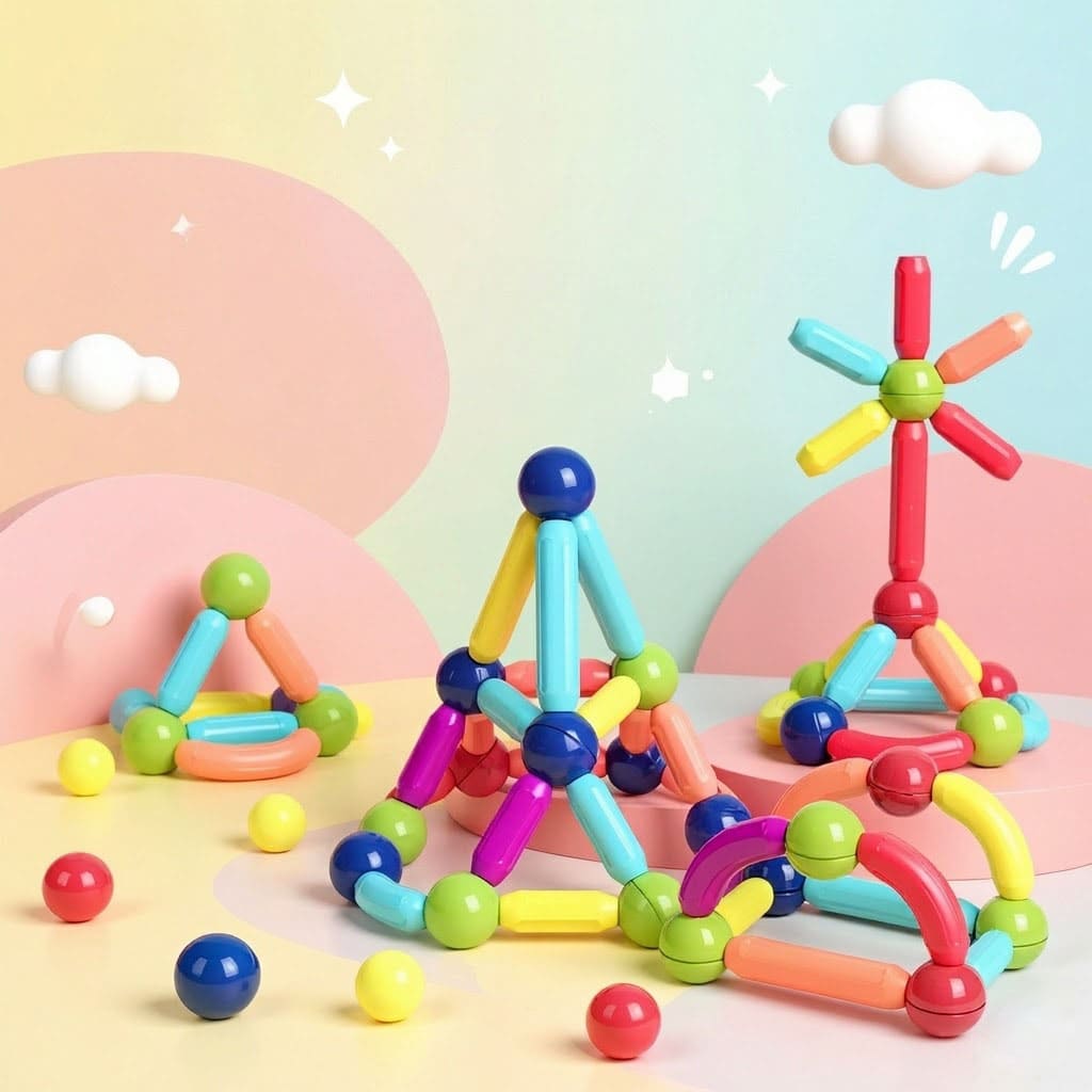 Елементи легко та надійно з’єднуються між собою завдяки магнітам — конструкції тримаються міцно і не розпадаються під час гри.